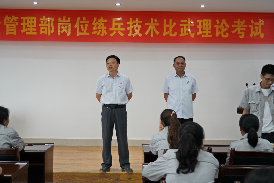 《樟树市人民政府办公室关于印发樟树市推进职业技能提升行动实施方案(2019-2021年)》(樟府办发[2019]52号)文件,提出支持企业一线职工参加岗位练兵、职业技能竞赛。为积极响应政府号召,进一步提髙公司员工队伍素质,培养发掘技术人才,推进公司技术创新,提升公司经济效益,增强企业竞争力,2020年6月30日下午,晶昊公司质量管理部按照公司岗位练兵、职业技能竞赛活动办公室的统一部署,在办公大楼四楼会议室举办了化验员岗位练兵技术比武理论考试,来自盐产品分析检验的化验员共49人参加考试。晶昊公司党委委员、总经理雷和波,党委副书记、副总经理、工会主席黄湘辉亲临考试现场进行指导并对化验员进行勉励,正式拉开了2020年度晶昊公司岗位练兵技术系列活动的序幕。