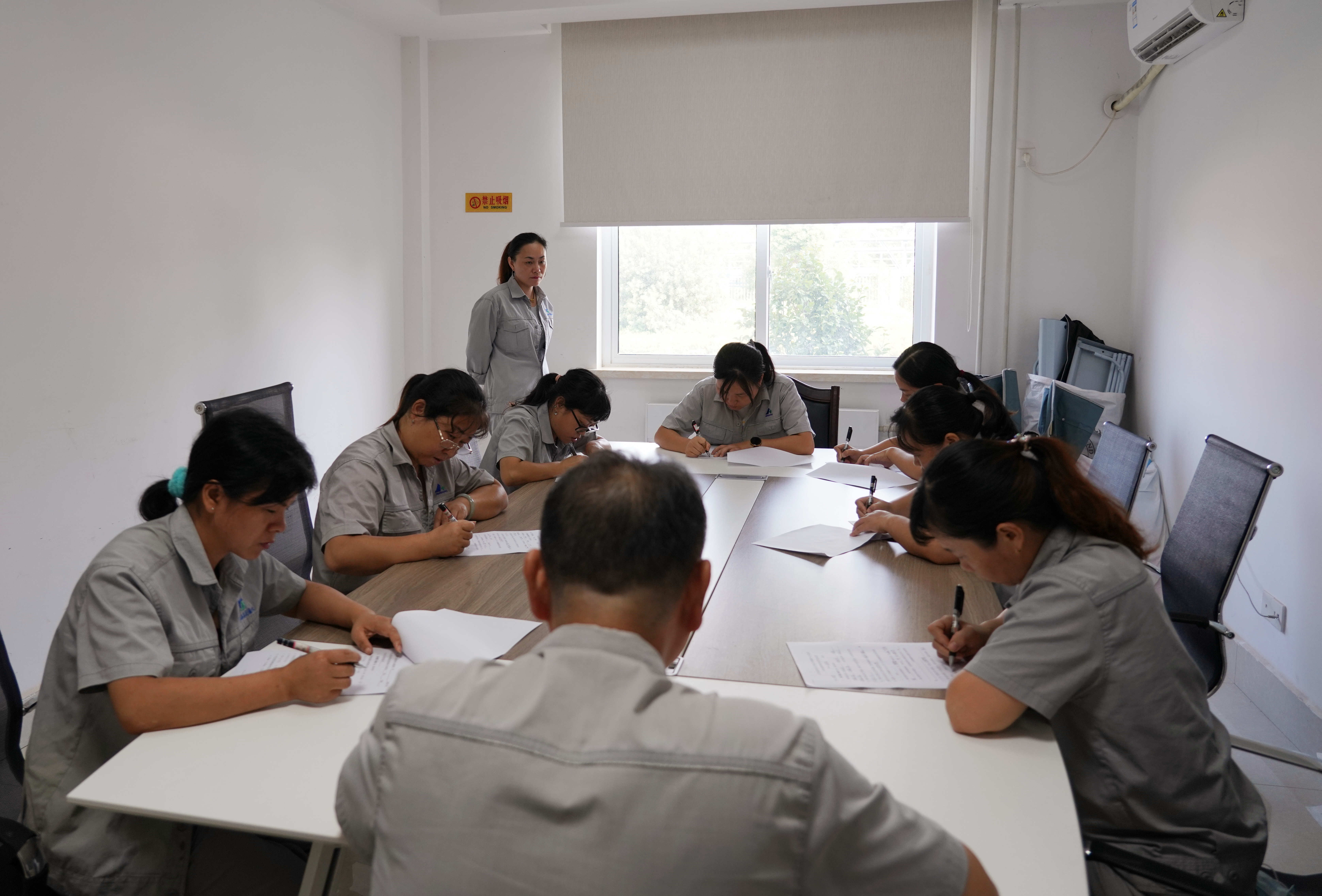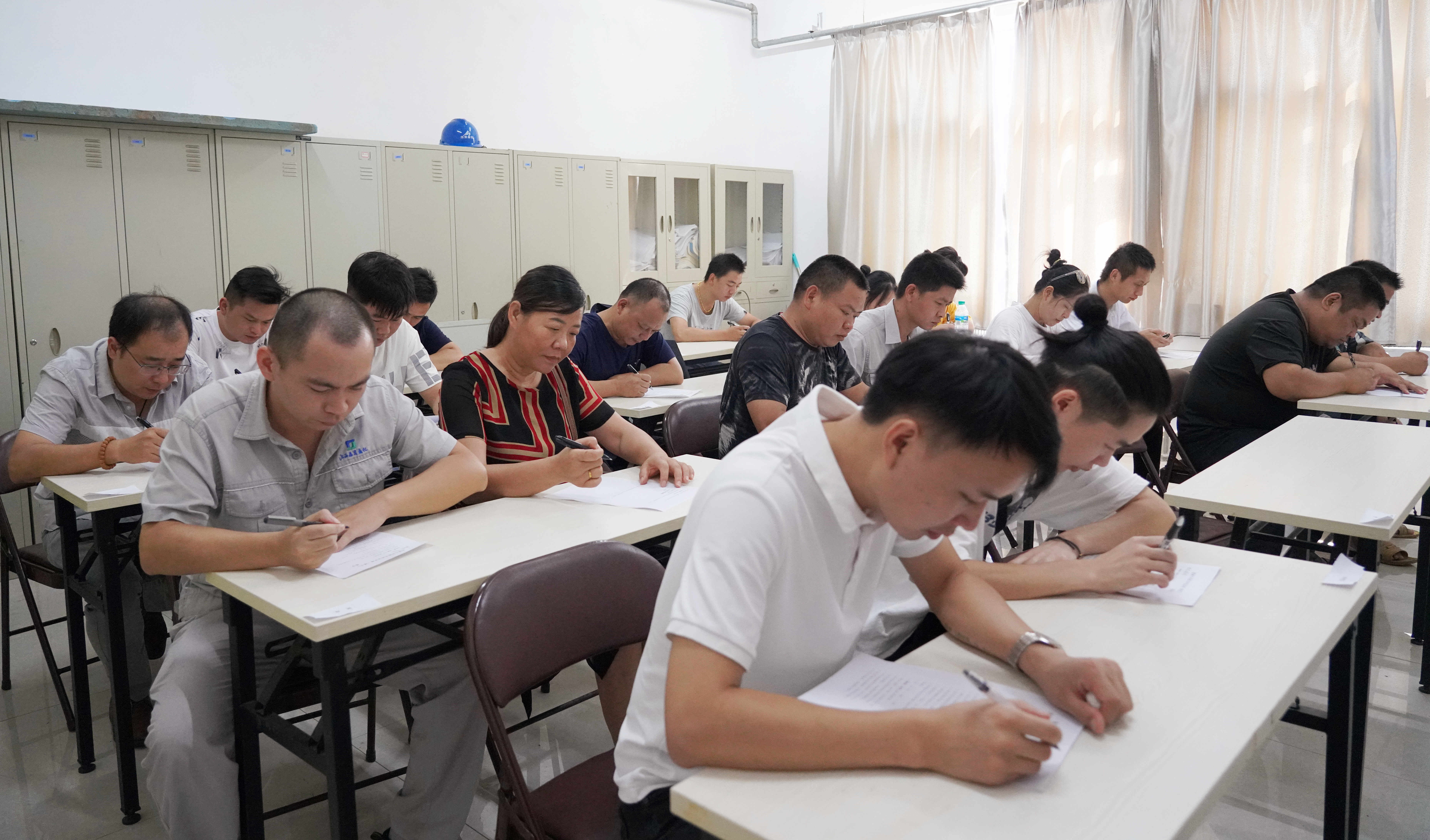 8月31日,晶昊公司重碱车间组织滤过、蒸吸、碳化工序岗位人员进行安全、工艺、制碱原理等理论知识考试,车间48名一线员工分批参加了考试,至此拉开晶昊公司2021年岗位练兵、技能竞赛活动的帷幕。