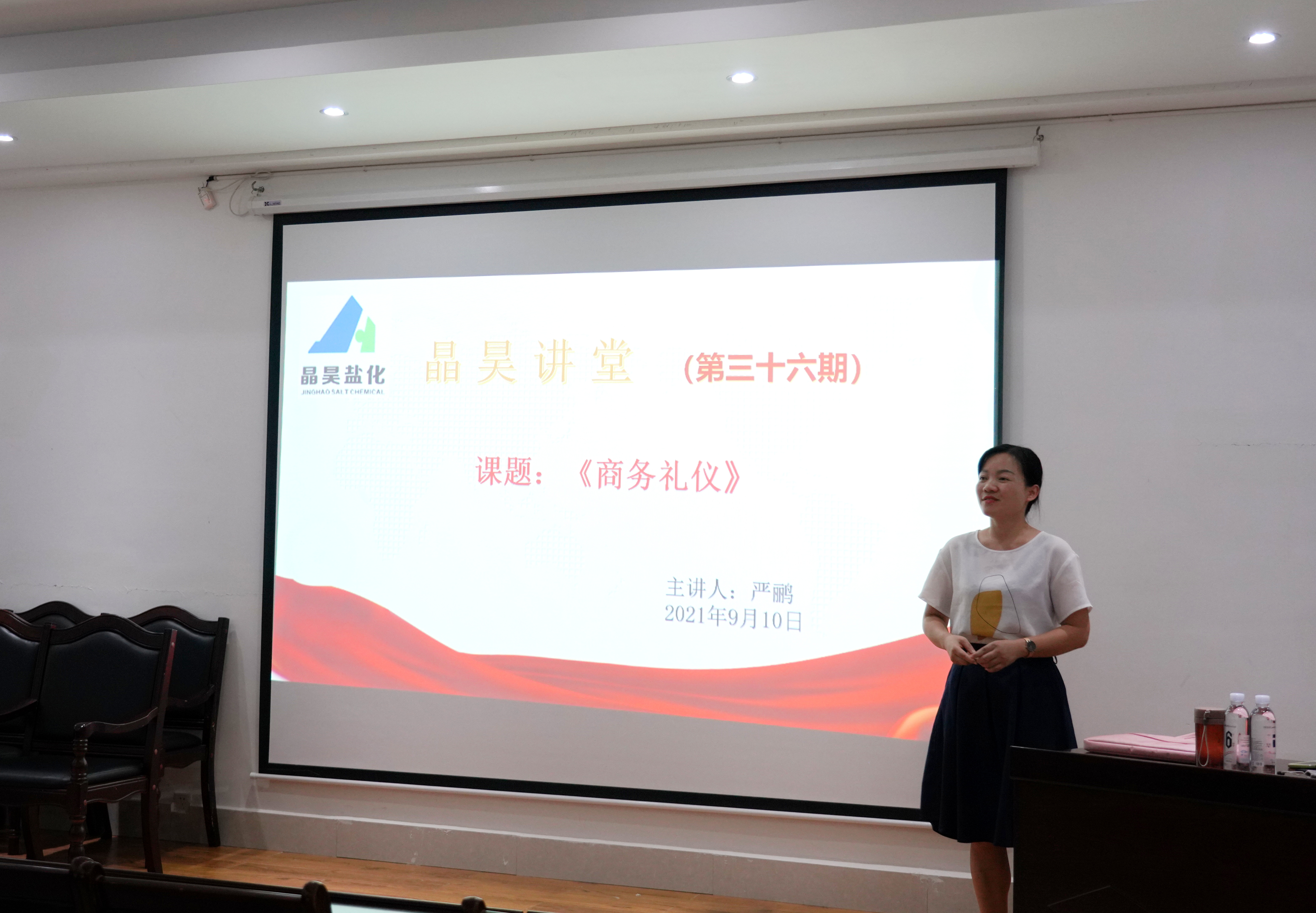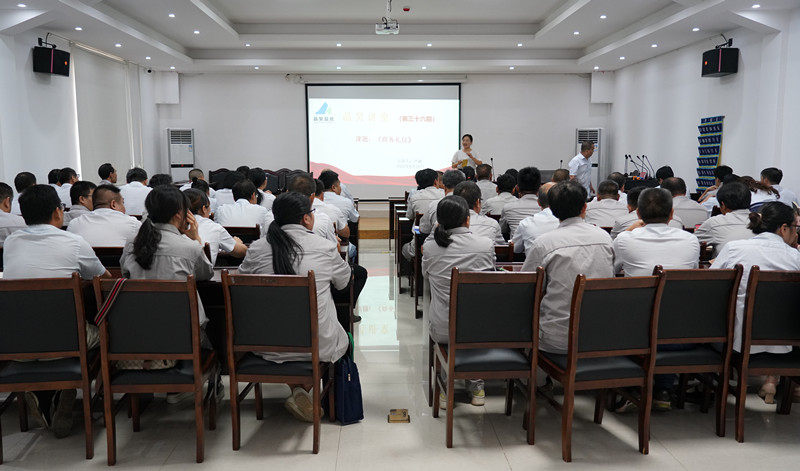 9月10日下午,“晶昊讲堂”第36期开讲,主要讲授商务礼仪只是。公司各车间、各部门中层管理人员及行政办事人员等共64人参加了此次培训。