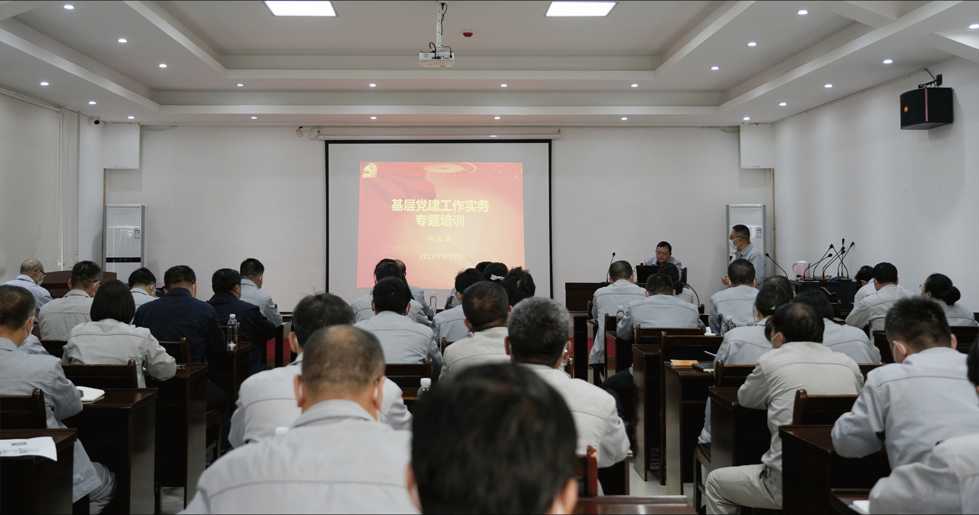 为进一步提高党务工作者的业务能力,提升各党(总)支部党建工作水平,2022年4月7日晚,江盐党校晶昊分校第一课正式开讲。本次课程主题为“基层党建工作实务”,由公司党委委员、工会主席胡加慧主讲,基层各党(总)支部书记、副书记、组织委员,党办全体人员共计52人参加培训。