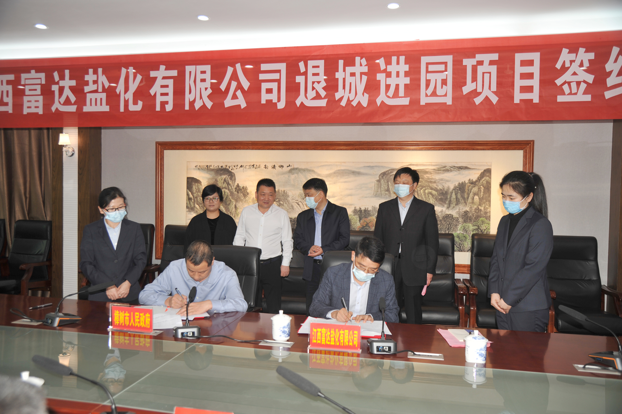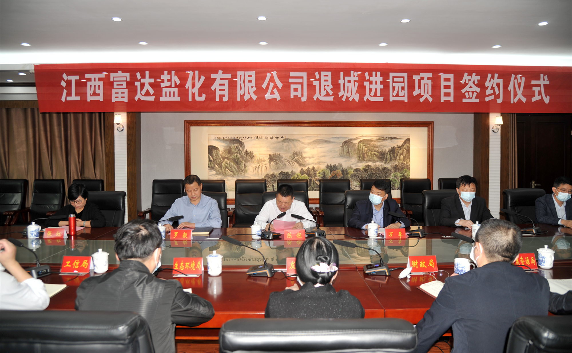 4月14日上午,江西富达盐化有限公司退城进园项目签约仪式在樟树宾馆举行,这标志着富达盐化退城进园迁建工作正式启动。
