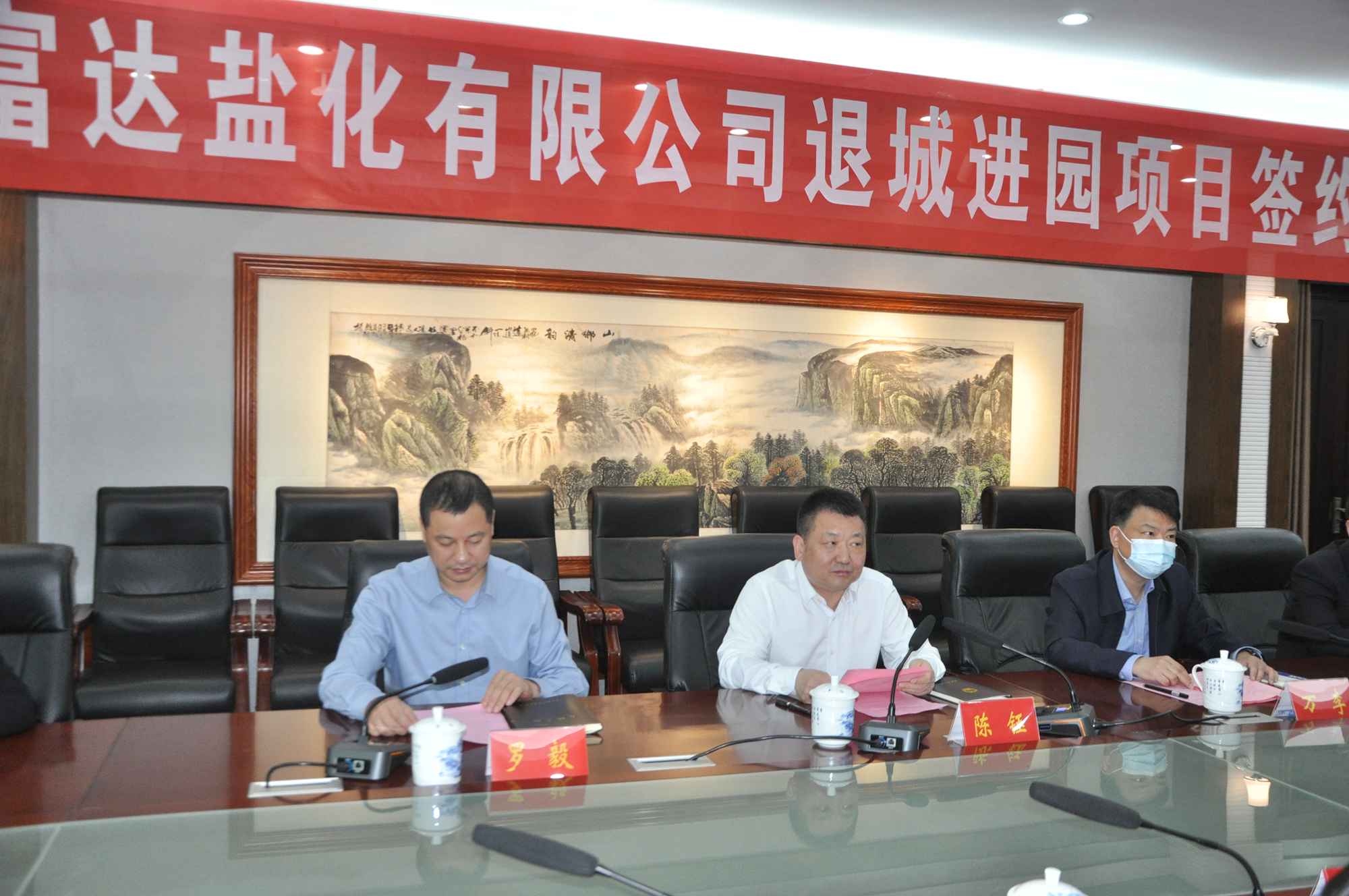 市委副书记、市长陈钰在签约仪式上致辞。他说,推进退城进园是我市提升城市建设水平、优化产业布局的一项重要举措,也是迁出企业实现空间突围、环境治理、工艺技术及设备升级等方面的全方位提升,是富达盐化实现由大到强的主要途径。希望江盐集团把该项目列入重要议事日程,明确工作专班和时间节点,加快项目搬迁进度。同时,市委、市政府也将整合一切资源力量,全力以赴协调解决制约项目搬迁的难题,推动项目早日达产达效。