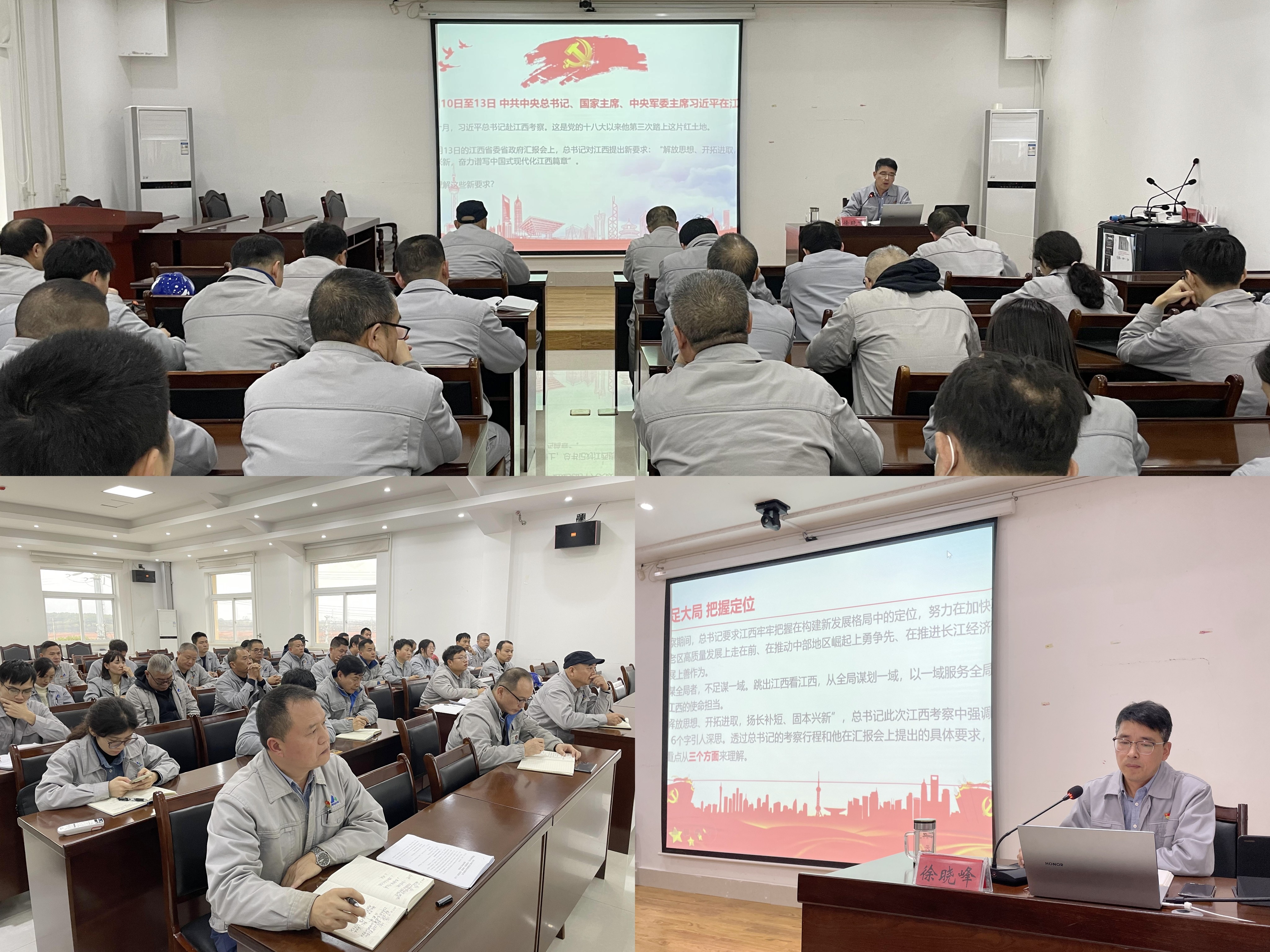 宣讲着重从深刻把握习近平总书记再次考察江西的重大意义、深刻把握习近平总书记对江西发展提出的新的战略定位、深刻把握习近平总书记对江西发展提出的任务要求、深刻把握习近平总书记对进一步推动长江经济带高质量发展的重要要求、深刻把握贯彻落实习近平总书记考察江西重要讲话精神的实践要求这五个方面,对习近平总书记考察江西重要讲话精神进行了系统阐释和深入解读。系统阐述了江盐集团、晶昊公司的发展战略及公司目前的发展态势,要求支部全体党员干部职工牢记习近平总书记要求,着眼公司高质量发展、绿色发展、低碳发展,做到“解放思想、开拓进取,扬长补短、固本兴新”,立足本职履职尽责,担当实干、砥砺前行,把习近平总书记重要讲话精神转化为推动国企深化改革提升行动的巨大动力、转化为担当实干的具体行动,奋力谱写中国式现代化江西篇章。