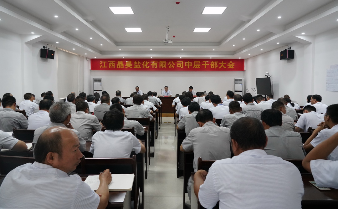 随后,宋梅芽作了动员讲话,他指出,召开干部大会,主要目的是通过劳动竞赛形式,进一步动员全体干部员工认清形势,正视困难,坚定信心,迎难而上,攻坚克难,汇聚全公司的力量,凝聚全体干部员工的智慧,党政工团齐上手,打一场精细管理,提高企业经济效益的攻坚战,为完成全年公司各项生产经营管理目标奠定坚实的基础。为确保劳动竞赛活动顺利开展,宋梅芽提出了具体要求,一是要充分认识劳动竞赛的重要性和紧迫性,加强活动的组织领导。开展此次活动,是动员广大干部员工的一个重要手段,意义十分重大。必须紧紧依靠全体员工,充分发扬主人翁精神,为集体而战,为全面发展而战;二是要强化大局意识,加大考核力度。各车间、部门要牢固树立“一盘棋”思想,必须遵循“严、恒、细、实、快、全”的考评原则,用好考核这个“指挥棒”,用好评比这个“风向标”,坚持考核、评比两手抓、两促进,强化结果运用,树立鲜明导向,激发广大员工参与热情和竞赛活力,推动竞赛活动取得实效;三是要加强领导班子建设、队伍建设、作风建设,进一步提高执行力。公司各级领导干部在此次活动中要发挥模范带头作用,要有雷厉风行的气魄、有果断干练的作风、要有一抓到底的决心;四是要对标先进,充满希望,实现晶昊梦。目前是检验晶昊在市场环境欠佳的情况下如何抓管理出效益的关键时期,要对标先进,力争上游,立足本职,胸怀大局,以自身工作的大提升,推动工作的大进步,为晶昊公司转型升级高质量跨越式发展凝心聚力、团结一心,全面完成集团公司下达的各项工作任务,为把公司打造成“长江以南具有竞争力盐化工企业”而不懈努力。