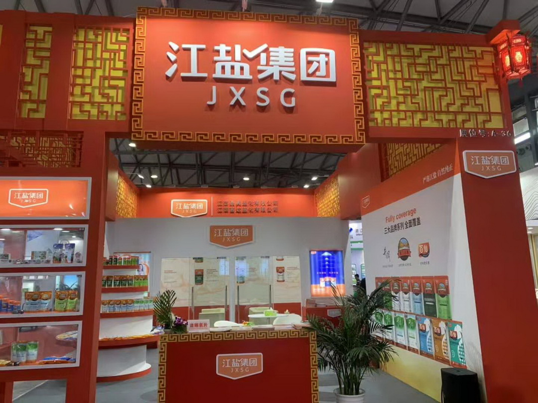 公司展台的搭建以特色鲜明的中国红为背景,融入江盐集团logo,根据各类产品包装样 式巧妙进行陈列摆放,整体色彩鲜明,整个博览会现场别具一格,吸引了众多食用盐、工业盐、纯碱的客户进展馆咨询。通过沟通交流,客户对公司的各类盐产品有了更加深入的了解,并高度赞赏了公司清江古海系列小包装盐及果蔬洗涤盐产品。在展会空隙,销售公司总经理余晓楠带领公司参展人员参观了盐博会其它盐企的展台,并详细咨询了解其出产的各类盐产品,及时掌握当前市场情况。