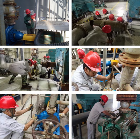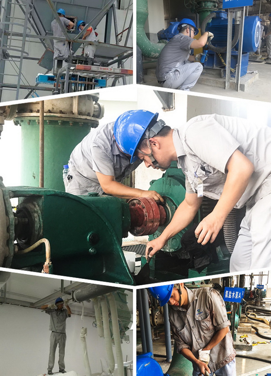 三、盐卤车间采卤泵安装调试、密封水管技改及设备防腐现场