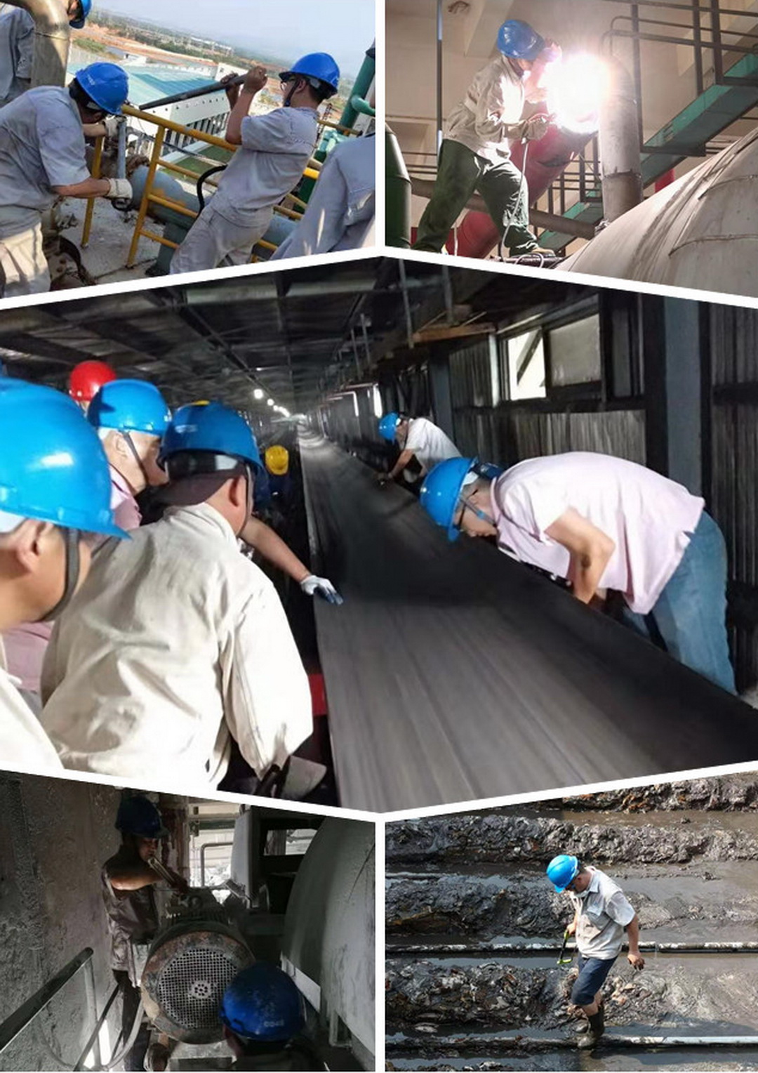 七、机修车间在动力更换皮带自动称和水化中和池管路及维修包装车间皮带廊电机