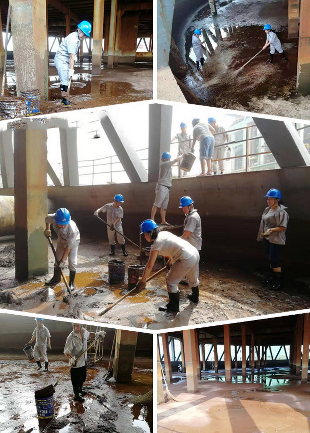 二、盐硝车间清理双曲线冷却塔塔底淤泥