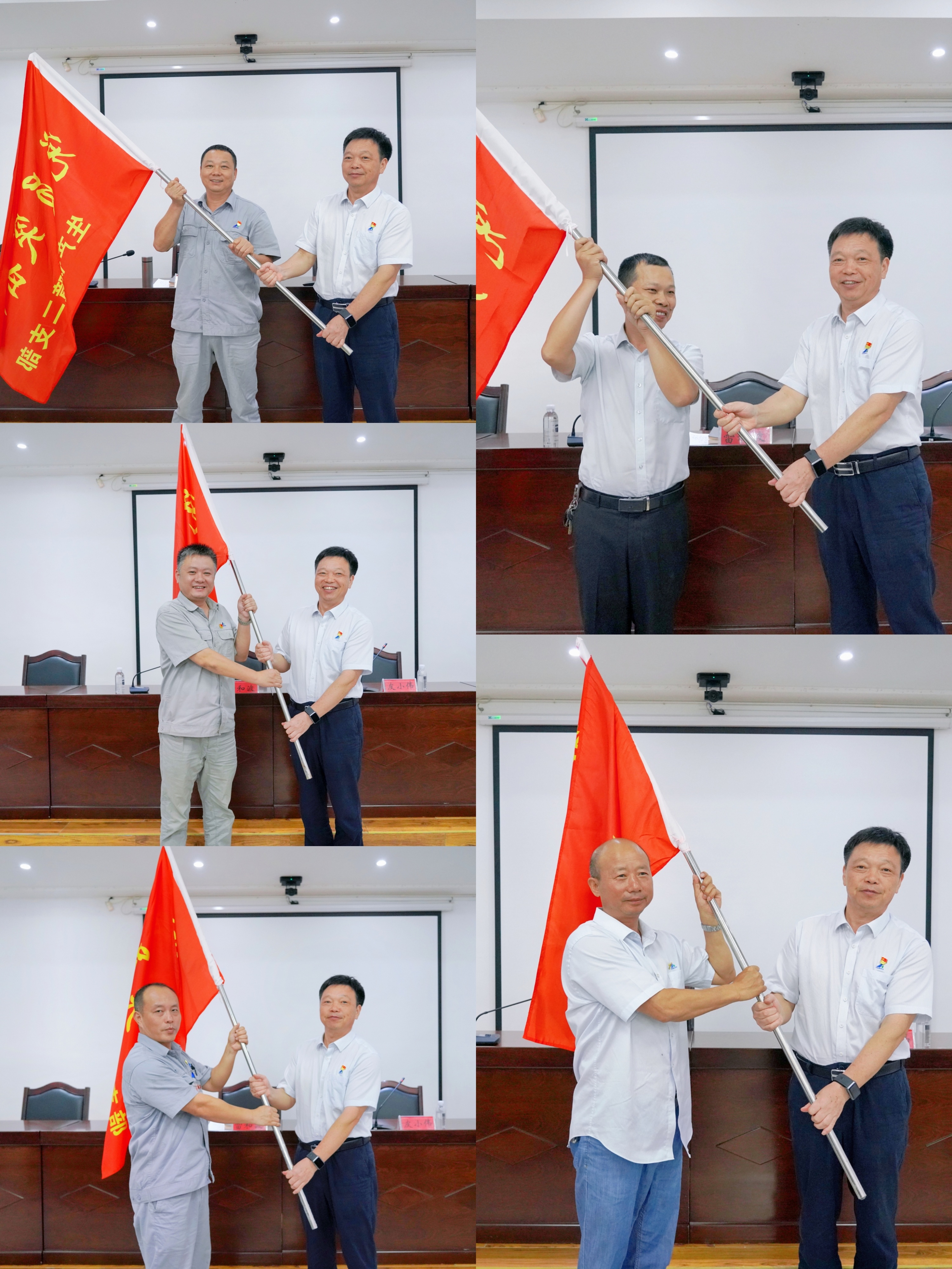 党建引领,攻坚克难。8月19日,公司党委举行停产检修党员突击队授旗仪式,公司党委书记、董事长雷和波为机关党总支、供销党总支、纯碱党总支、生保党总支和制盐党总支等5支党员突击队代表授旗。“聚是一团火,散是满天星”,越是关键时刻,越能映照党员初心、更能彰显党员风采。雷和波要求各党支部要发挥基层党支部的战斗堡垒作用和党员的先锋模范作用,积极响应、迅速行动,合理安排检修力量,党员突击队要充分发扬不惧困难、敢打硬仗的顽强作风,深扎检修一线,做到一家人、一条心、一个目标、一股劲,凝聚合力,在检修消缺中攻坚克难、创先争优,敢于“啃硬骨头”,将党员突击队旗帜覆盖到整个检修现场,让党员突击队领跑晶昊公司检修主战场。