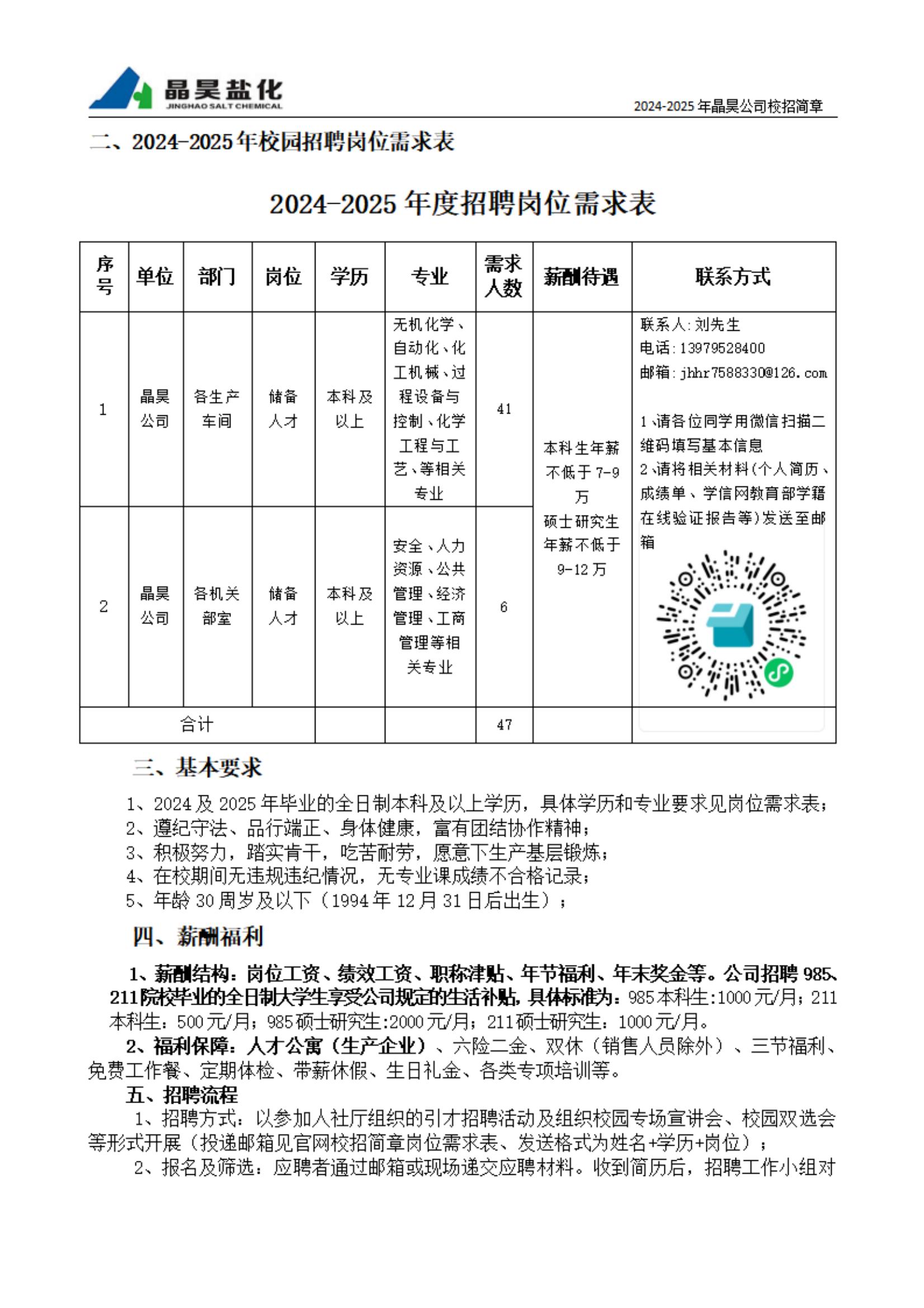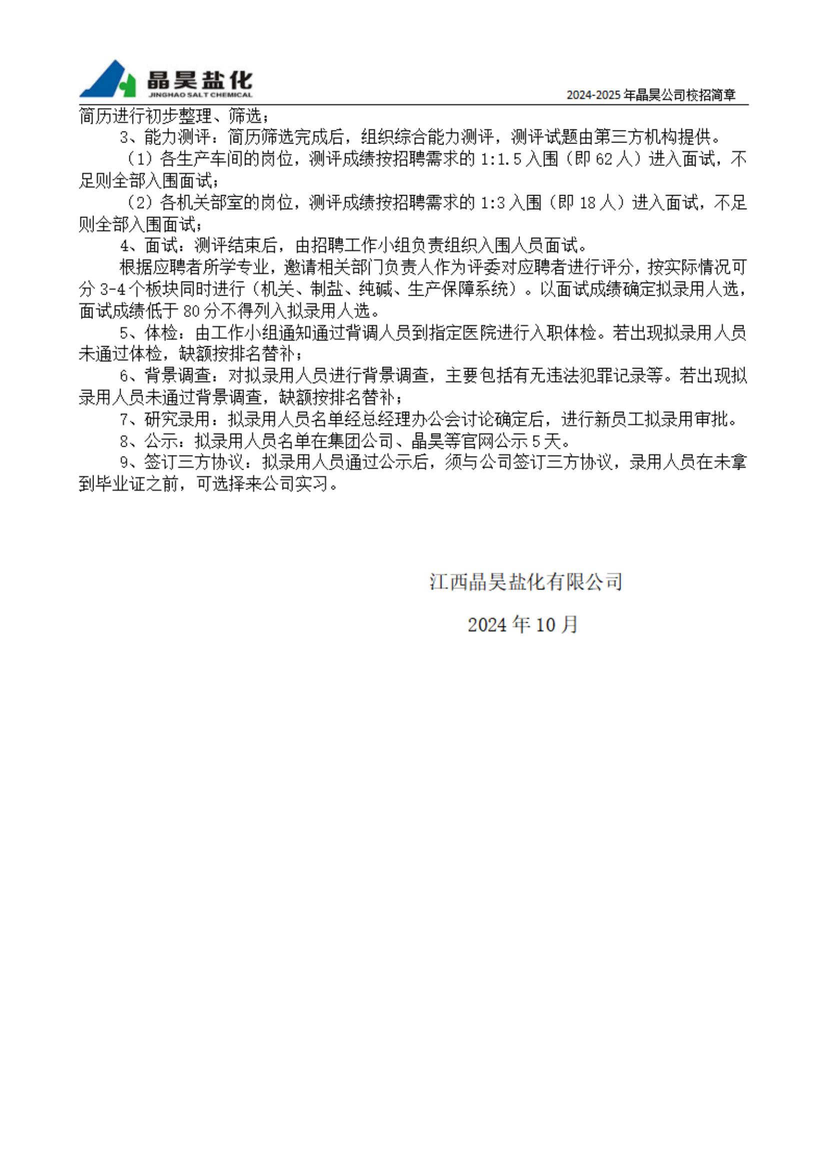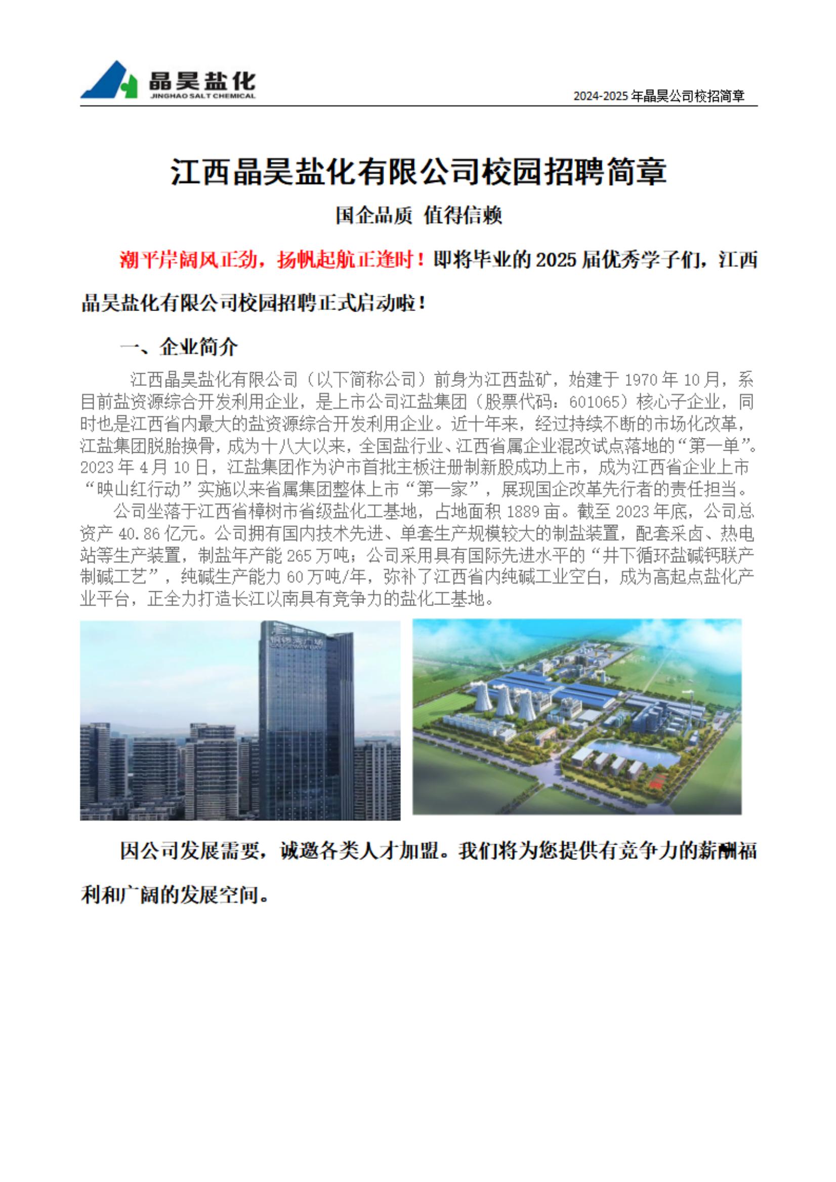 江西晶昊盐化有限公司校园招聘简章