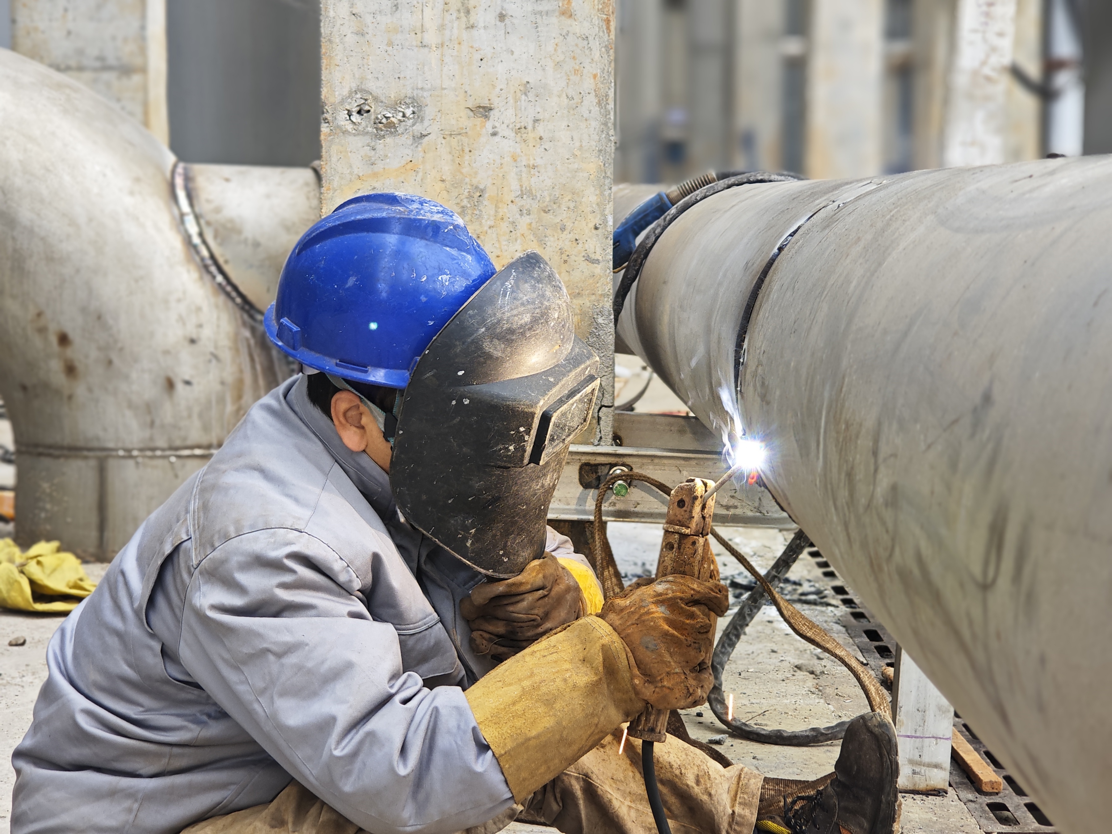 一接到任务,制盐生产技术部检修人员便到现场实地考察,制定工作方案。在制作过程中,由于管道过长,需要增加管道的地方跨度过大,检修人员量出所需安装位置的长度后,检修间进行加工,待切割出需要的长度后运至现场进行精准对接。由于管道为Φ377不锈钢串联管,切割与焊接难度较大。正值冬季,室外温度较低,送卤管道在室外风口处没有遮挡,检修人员数日在寒风中切割、测量、焊接,寒气渗入棉袄让人冷得发抖,但他们依旧稳稳控制着焊枪精准落在缝隙上,一点点将管道分离相嵌。机械检修工段的同事相互协作,各司其职,耗时三天时间顺利完成该项改造工程。