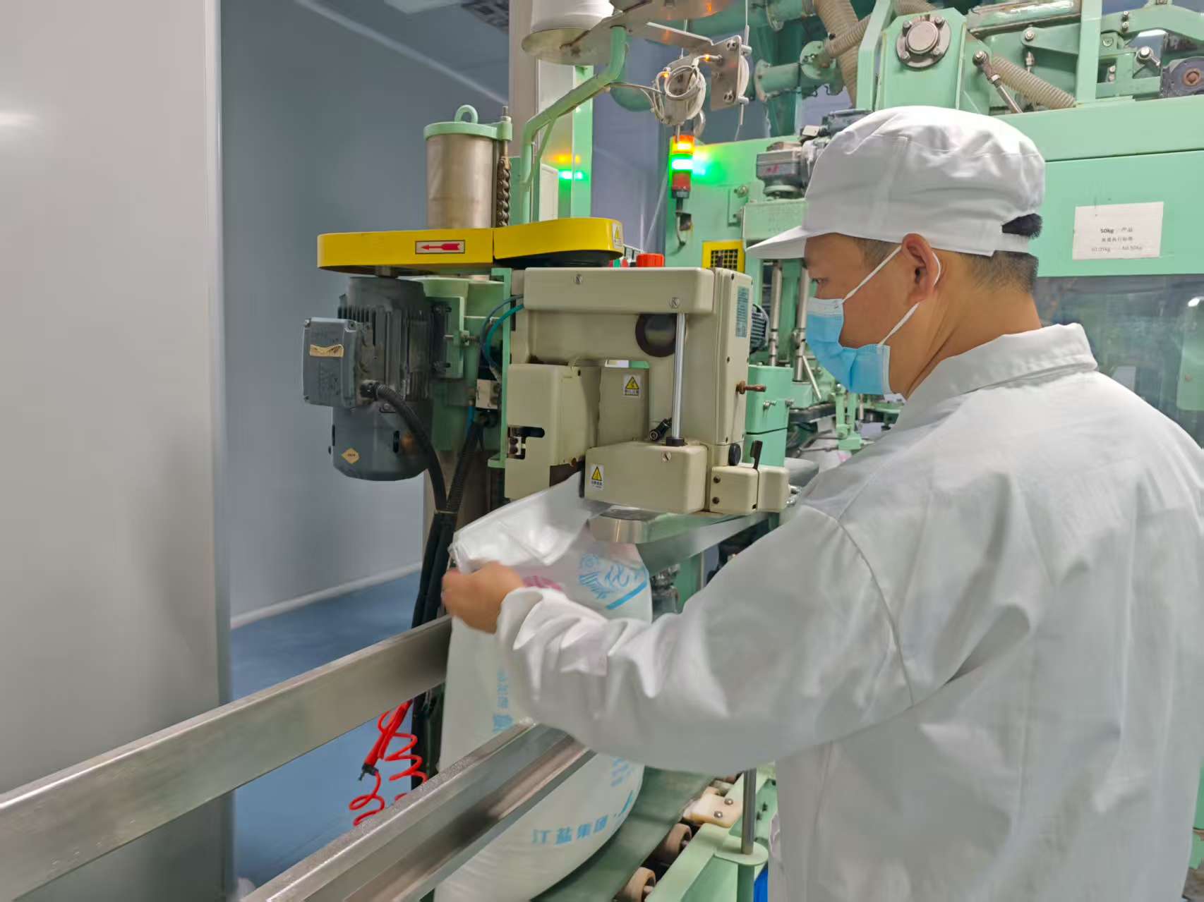 生产节奏的连贯,是效率提升的关键。为避免就餐时间斗内积盐影响生产进度,包装车间细化流程衔接:就餐时段,车间员工主动顶上,让外聘用工优先用餐,无缝衔接投入套袋及缝包工作,确保生产环节“不断档”。党员示范岗的肖发俊说:“生产紧张的时候,我作为一名党员,更要冲锋在前,确保完成生产任务!”在他的带动下,大家拧成一股绳,心往一处想、劲往一处使,用默契和奉献筑牢生产保障线。