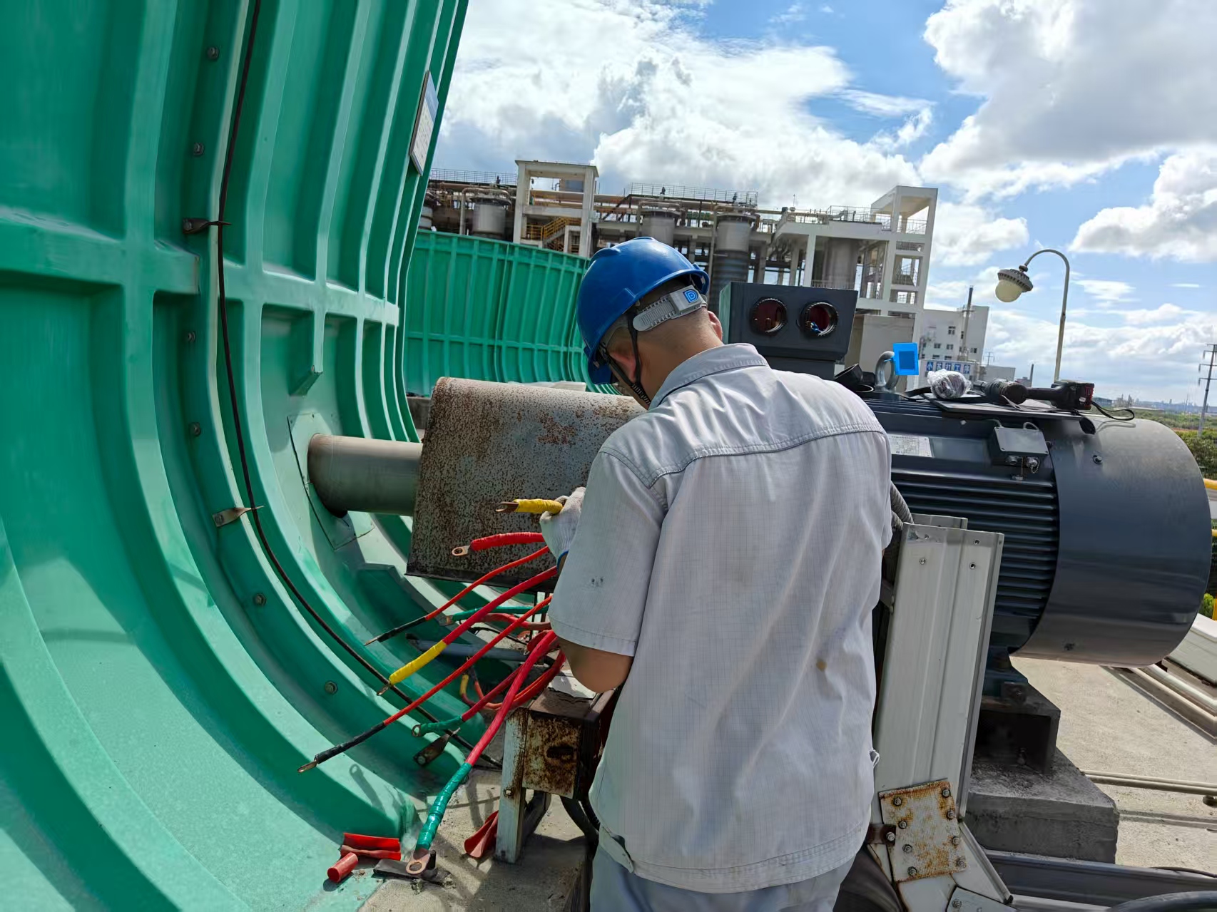 为确保更换任务按期完成,水汽车间抢抓生产窗口期,制订详细的更换计划,从物资调配、现场勘查、施工方案编制,到现场施工安全、质量、进度管控,均组织专人跟进协调,严格票证办理,确保现场施工安全有序。作业现场,电仪检修人员克服高温困难,一丝不苟、精益求精地对待每一个环节,设备改造现场到处是他们忙碌的身影。在大家的共同努力下,顺利完成了全部旧电机的更换工作。