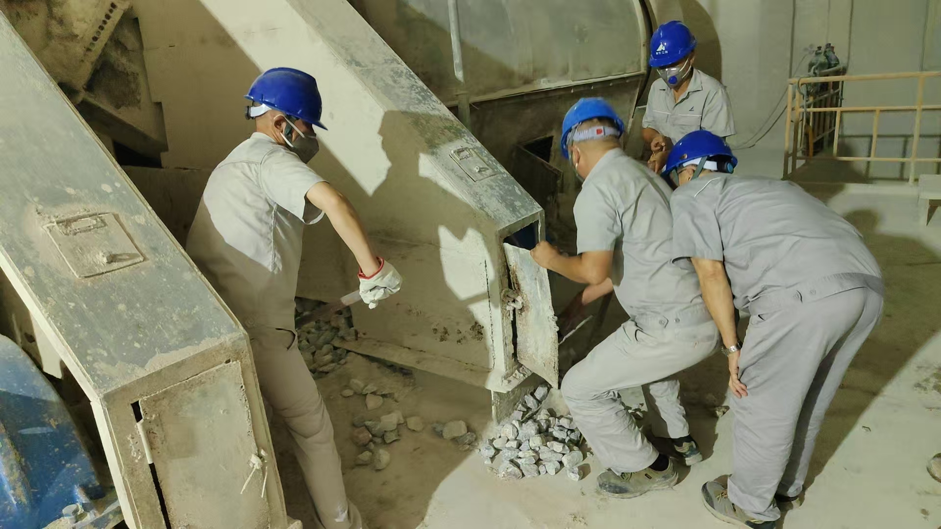 国庆假期第一天,晚上8时许,仓储车间二值皮带工进行例行巡检,滚筒筛附近一阵轻微的异响引起了他的高度警觉。经观察,他发现溢流口处有石料漏出,且滚筒筛内部已有石料滞留现象。情况紧急,他没有丝毫犹豫,立即按照应急处置流程,第一时间逐级进行汇报,车间在接到报告后,迅速启动应急预案。车间立即组成党员突击队伍,大家分工协作,更换备件、校正位置、修复加固……现场灯火通明,抢修工作紧张而有序地进行着。汗水浸湿了工装,但大家心中只有一个信念:尽快修复设备,恢复生产!一个半小时后,设备重新启动,运行平稳正常,隐患被成功化解在萌芽状态,石灰石供料系统得到了有力保障。