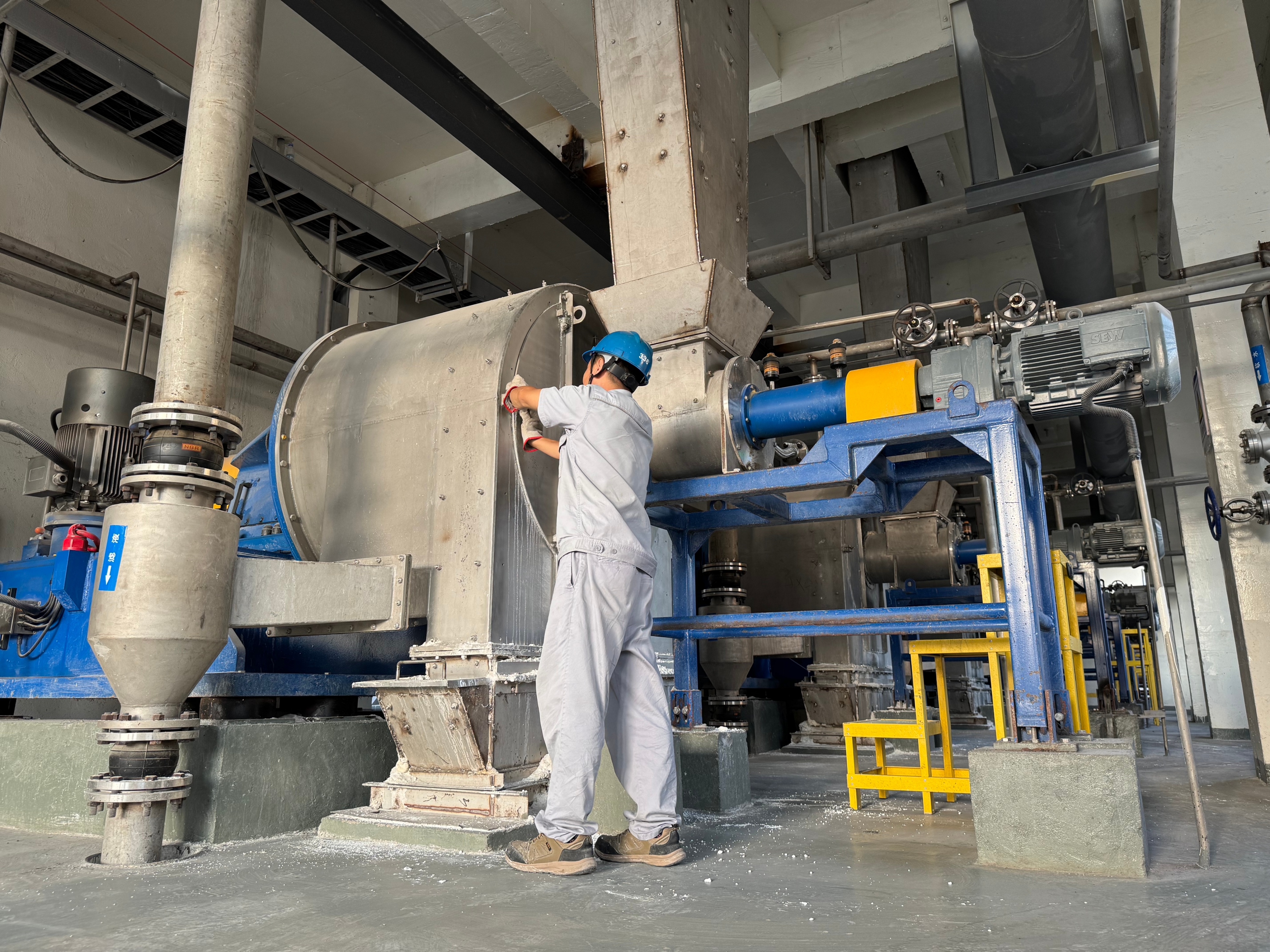 国庆长假,当大多数人享受闲暇时光时,重碱车间的生产现场却是一派热火朝天的景象。为确保产品质量,车间员工们精心操作,分毫必争。在碳化岗位,操作人员紧盯屏幕,精细调控碳化塔的温度与液位,确保了较高的转化率,为后续工序提供了优质的中间产品。在离心机岗位,员工一丝不苟地维护设备,确保滤网透水性良好,显著降低了重碱水分,直接为下游煅烧工序的节能降耗打下了坚实基础。