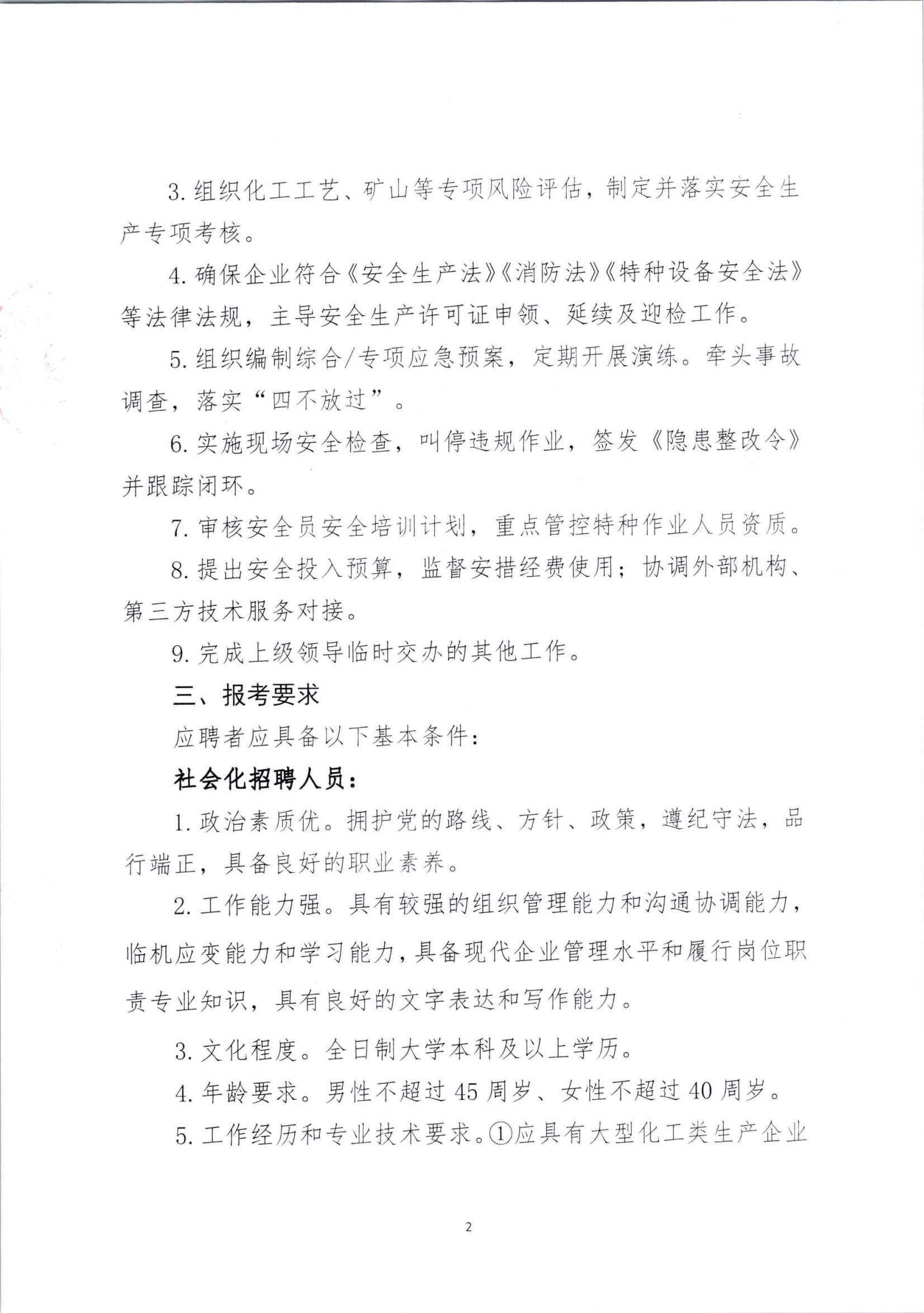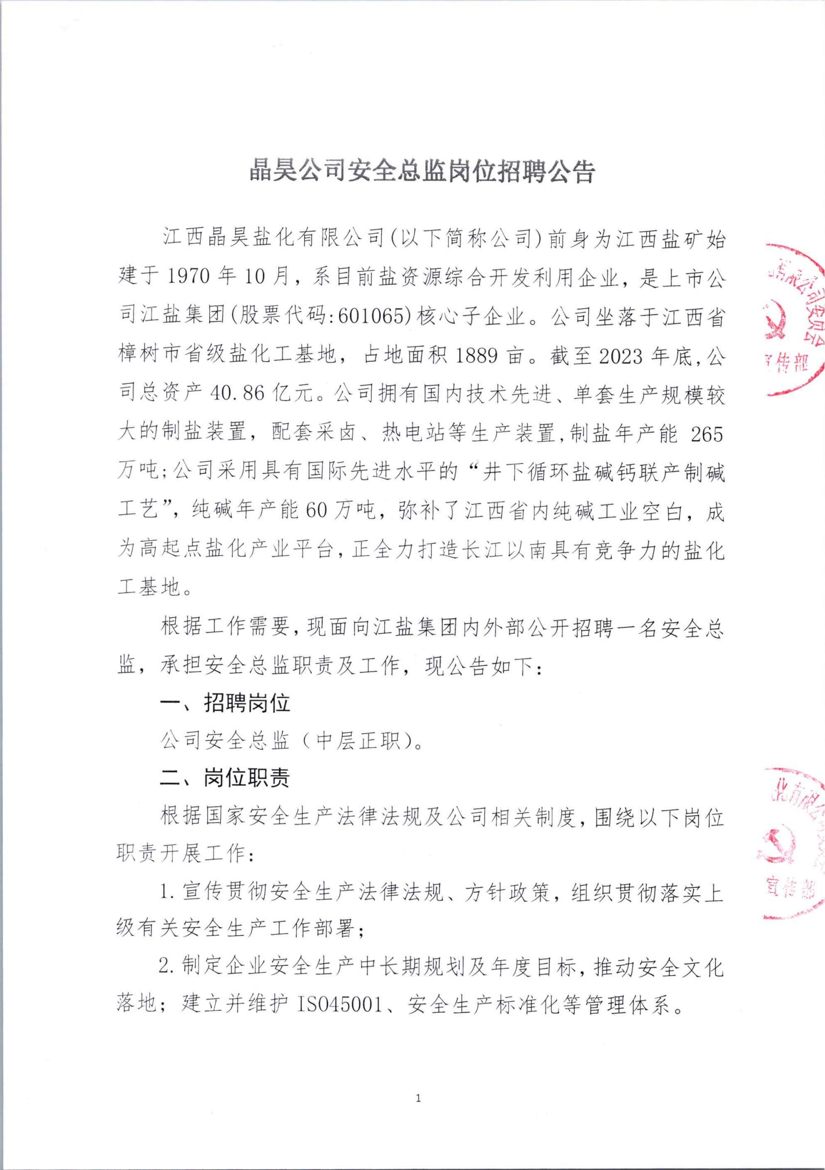 晶昊公司安全总监岗位招聘公告