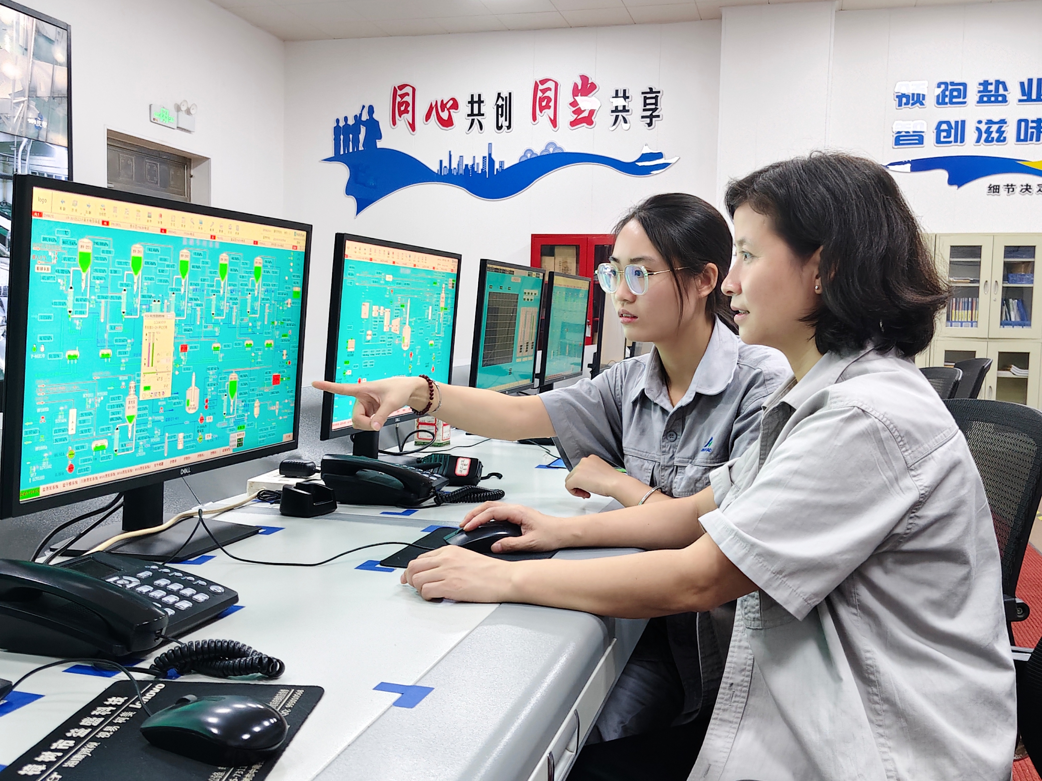 操作DCS系统时,我总怕出错。一次母液转料管道堵塞,师傅让我上手调节阀门,她在旁边陪伴提醒:“阀门开到最大、最小反复几次,对讲机与现场师傅保持沟通!”她的叮嘱,让我明白系统操作不是按按钮,而是要让“神经中枢”和现场手脚协同发力。每一次操作,师父都在旁守护,教我精准把控。