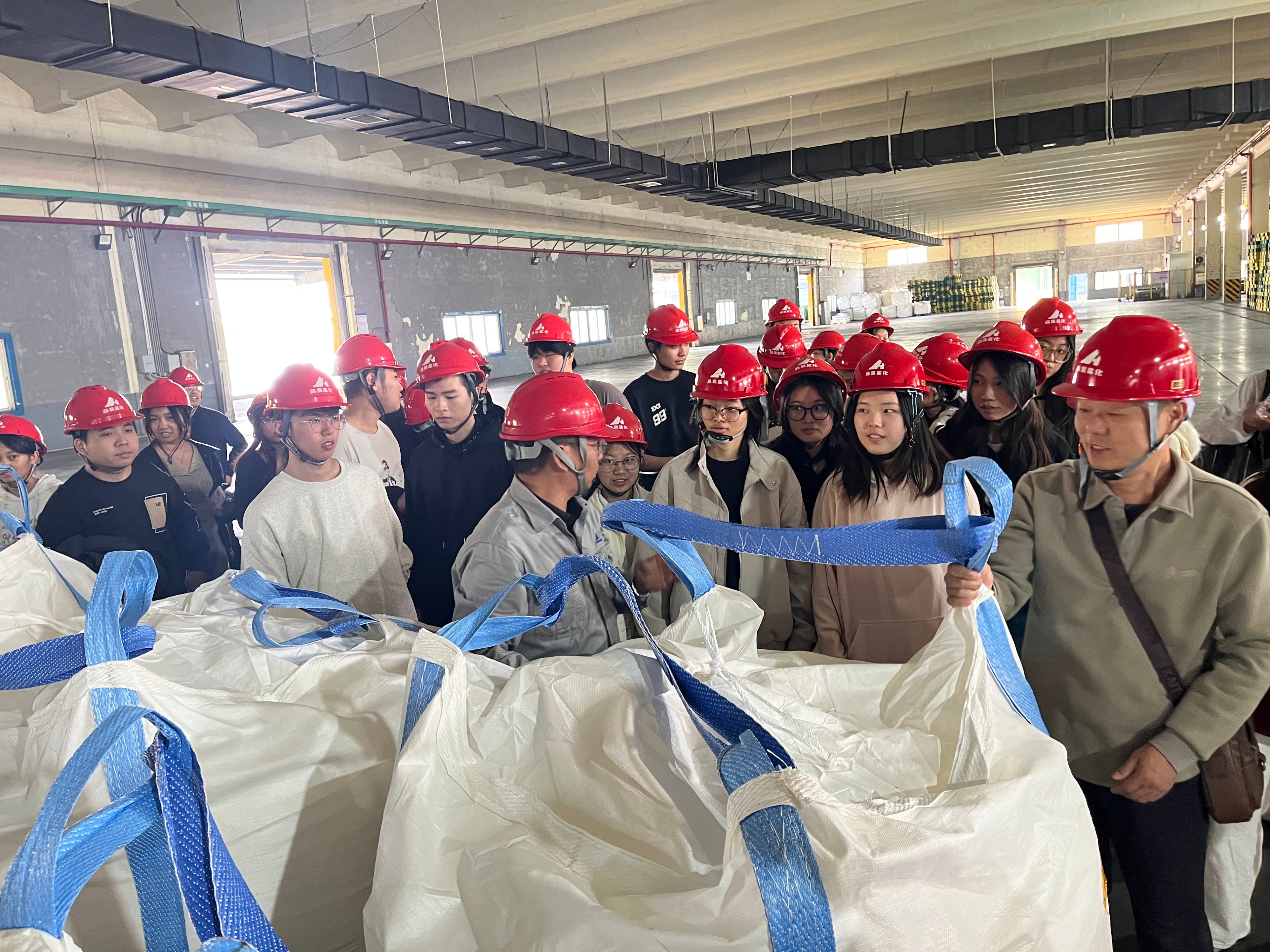 随后,师生一行前往仓储中心,实地参观了物资材料库与氯化钙仓库。车间管理人员系统介绍了仓库功能布局、货物存储规范及出入库流程,重点强调了化工产品在温湿度控制与安全防护方面的管理要求。通过现场演示智慧物流管理系统在货物存放、库存更新及订单生成等环节的操作,让学生们直观感受到数字化仓储管理的先进性与实用性。