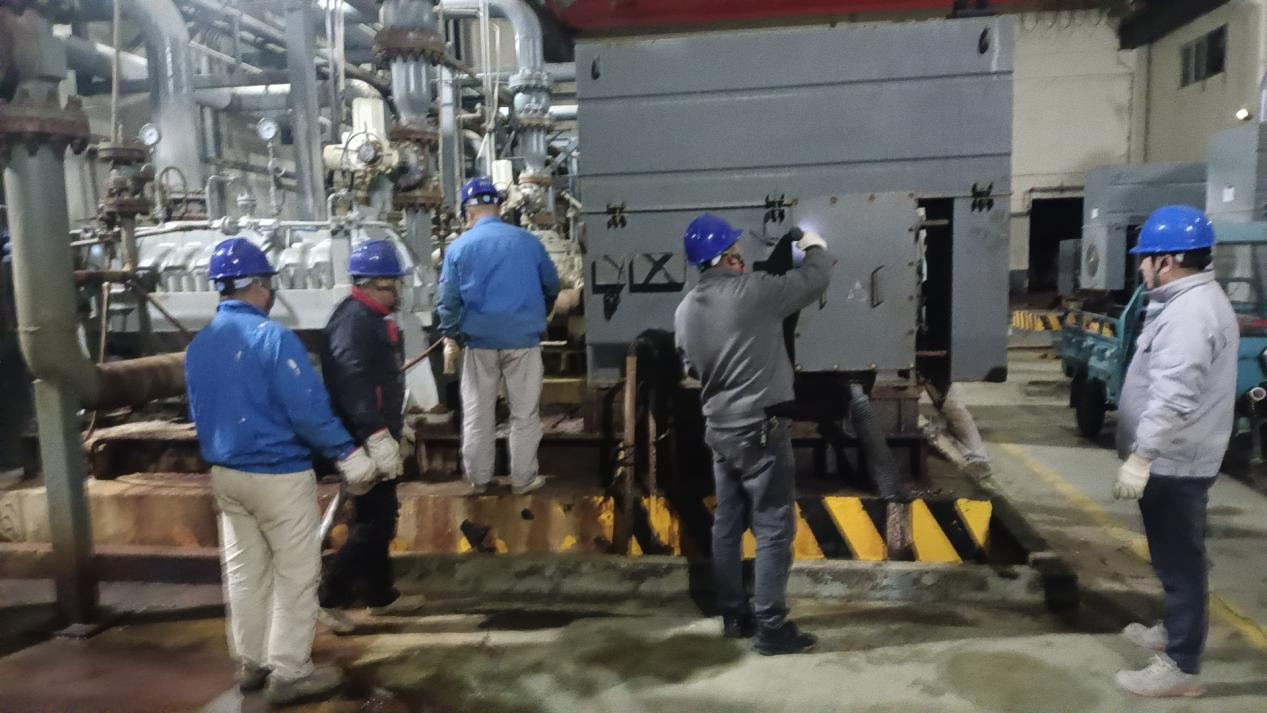 盐卤车间党员突击队抢修7号淡钙液泵电机