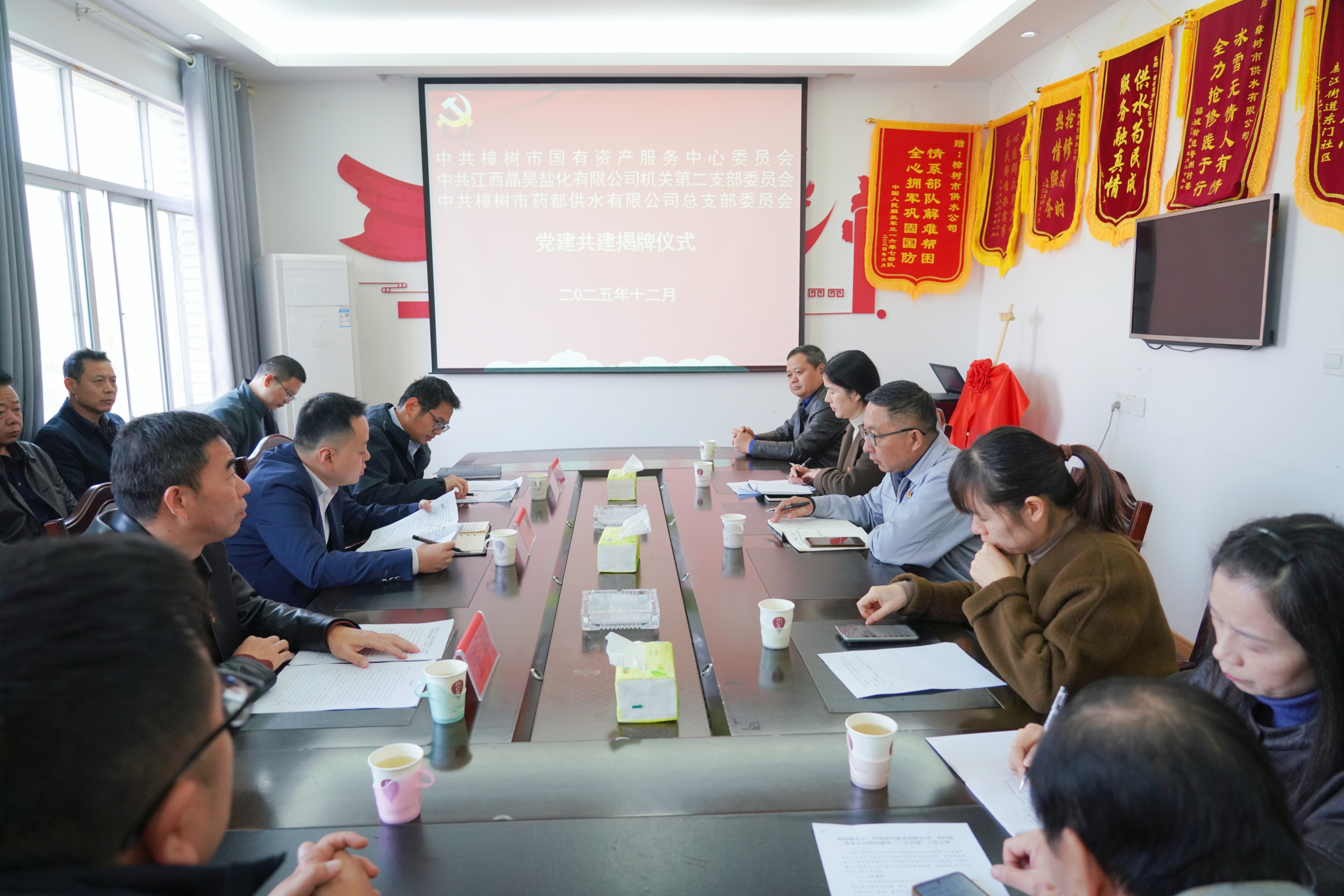 12月9日上午,晶昊公司机关第二党支部联合樟树市国有资产监督管理中心党委、樟树市药都供水公司党总支,在药都供水公司开展以“党建引领促发展 政企同心惠民生”为主题的党建共建活动暨揭牌仪式。三家单位30余名党员代表齐聚一堂,通过座谈交流共探党建工作新路径,凝聚政企协同发展新动能。
