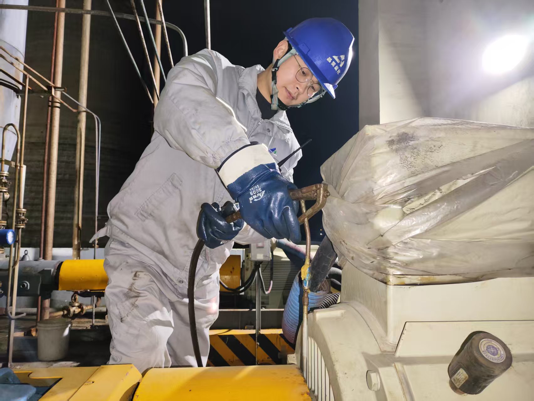 初入车间,错综的工艺流程与庞杂的设备体系让我倍感压力。幸运的是,我遇到了导师张爱国。他教给我的第一课是安全教育课,那句“在车间,必须戴安全帽”的叮咛,至今是我心中不可逾越的铁律。师傅常利用休息时间,带我沿着管线一路梳理,从阀门调控到泵机维护,从离心机运行到结片机操作,无不细致讲解、倾囊相授。班组的同事也帮助我成长:班长手把手指导DCS系统操作;老师傅巡检时,总不忘提醒我关注设备状态、解析运行逻辑。正是这浓厚的“传帮带”氛围,让我迅速融入盐钙车间这个团结奋进的集体。