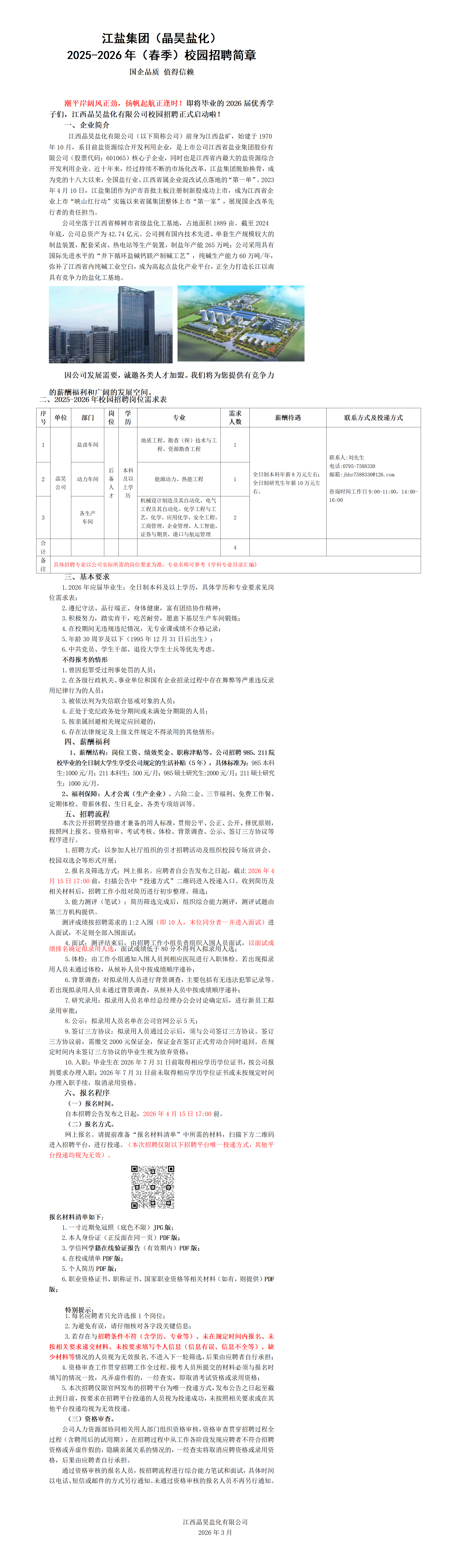江盐集团(晶昊盐化) 2025-2026年(春季)校园招聘简章